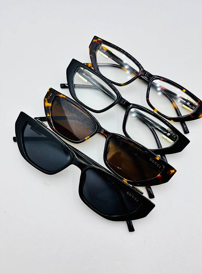 Стильные женские очки под бренд Gu,форма cat eyes,цвет черный,лео,прозрачные имиджевые