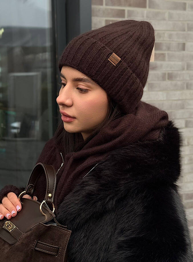 Шапка шоколадная Мали с ангоркой, размер 56-58