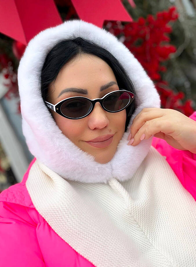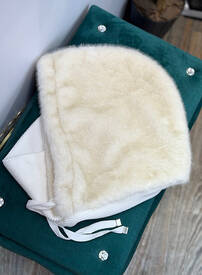 Капор плюшевий з еко-хутра білий з довʼязом,має теплий підклад,виробник Україна