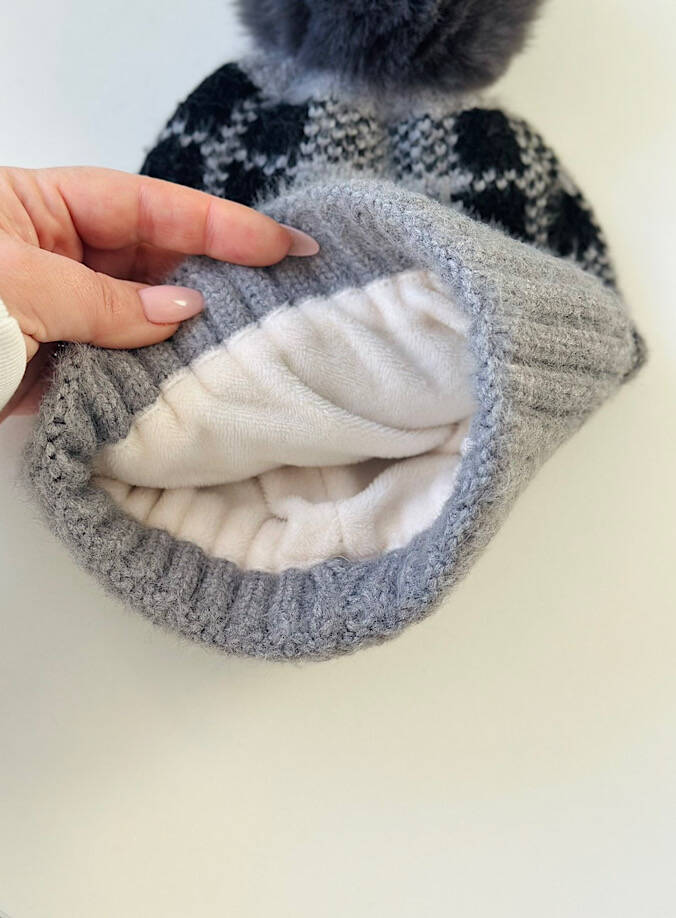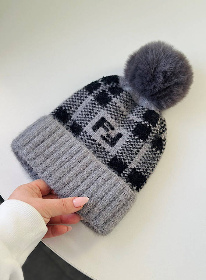 Шапка сіра тепла універсальна з помпоном в стилі Фенді,має теплу підкладку, якісно виготовлена